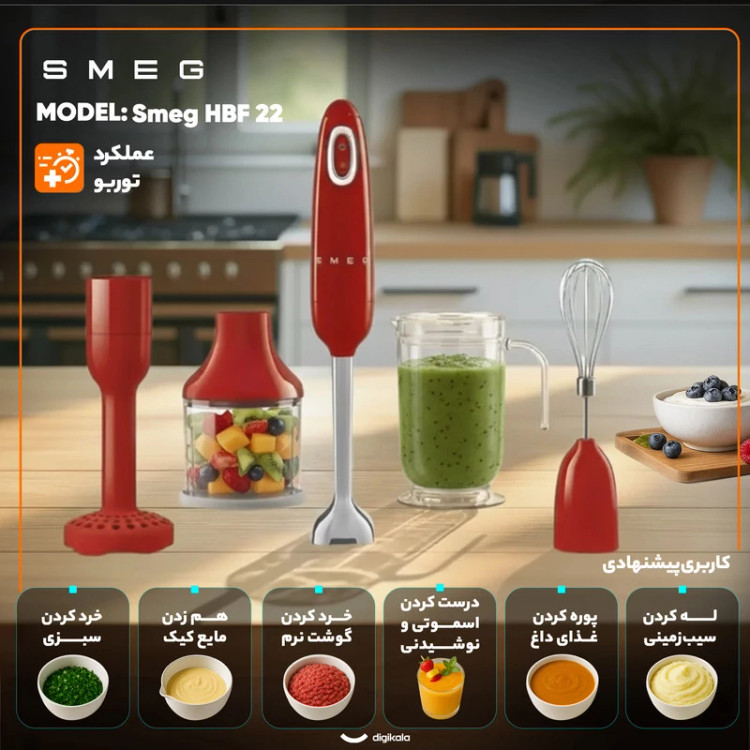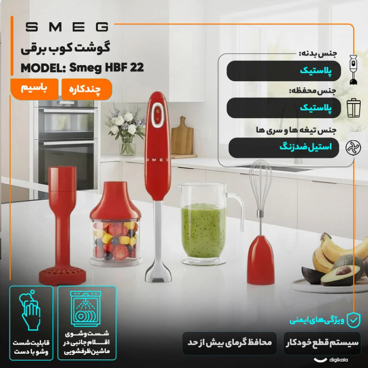 امروزه گوشت کوبهای چندکاره با قابلیتهای فراوان توسط شرکتهای مختلف حوزهی تولید لوازم آشپزخانه، طراحی و تولید میشود. در همین راستا شرکت ایتالیایی اسمگ نیز، گوشتکوبهای متنوع در طرحهای مختلف و با کاراییهای متفاوتی را طراحی کرده است. گوشتکوب اسمگ مدل HBF22 یکی از این گوشت کوبهای طراحی شده است. مدل پیشین تک کاره بوده و میدانیم که اکثر افراد به گوشکوب برقی چند کاره علاقه دارند. گوشت کوب یا همزن دستی اسمگ مدل HBF22 یک دستگاه کامل است که ما را از هر جستجوی دیگری در میان محصولات مشابه بینیاز مینماید و انتخاب آن مطمئناً برای سالیان متمادی استفاده جواب میدهد.